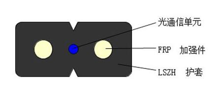 接入網(wǎng)用蝶形引入室內(nèi)光纜是將光通信單元處于中心,兩側(cè)放置兩根平行非金屬加強(qiáng)元件(FRP),最后,擠制黑色或彩色低煙無(wú)鹵護(hù)套成纜。