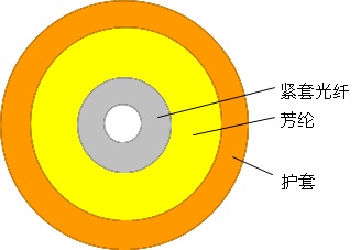 SXC單芯光纜使用單根Φ900µm或Φ600µm阻燃緊套光纖作為光傳輸介質(zhì),外覆一層芳綸作為受力加強單元,最外擠制一層聚氯乙烯(PVC)或低煙無鹵材料(LSZH,低煙、無鹵、阻燃)護套而成。